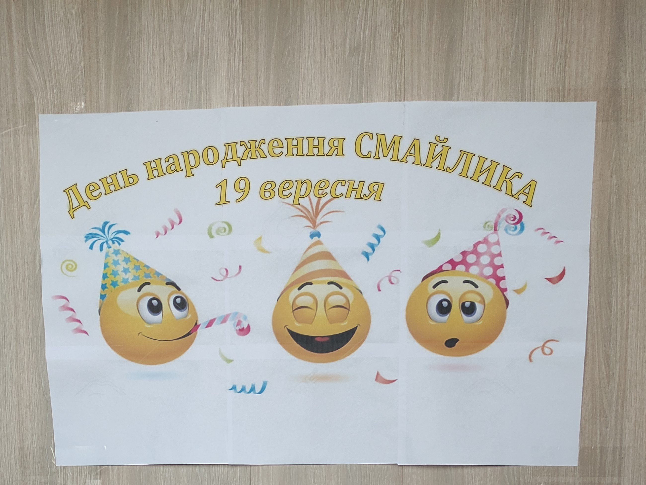 Щороку 19 вересня відзначають незвичайне свято — День народження дружелюбного електронного символу — День народження «Смайлика». Цьогоріч йому виповнилося 39 років. Отож, для учнів 5-х класів випала нагода проявити свою творчість та весело розфарбувати настінний плакат від вчителя інформатики Бурдун Б.П.