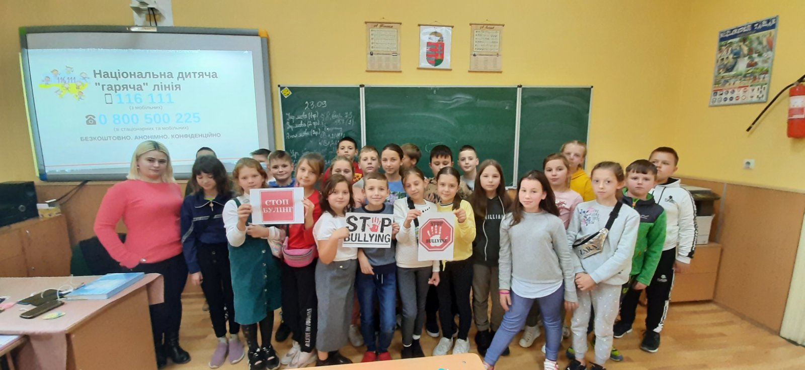 У рамках тижня протидії булінгу у 1 семестрі 2021-2022 навчального року у нашому класі пройшла година спілкування “#булитиНЕкруто” на якому ми обговорили види булінгу та як ефективно протидіяти проявам булінгу. Також на завершення уроку учні отримали матриці “Я проти булінгу” та наклеїли їх як пам’ятку у свої щоденники.